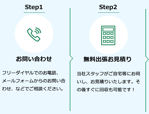 急に転勤が決まり、急いで引っ越ししなければいけない。しかし、不用品回収の出張見積をお願いして立ち合いしている時間もなかなか取れなかったのですが、LINE簡単見積で、回収希望の電化製品や家具など、写真を撮ってLINEで送ったら、すぐに査定して頂き、買取できるものもあるということで回収をお願いしました。会社都合での急な引っ越しだったのですが、素早く対応していただき、ありがとうございました。