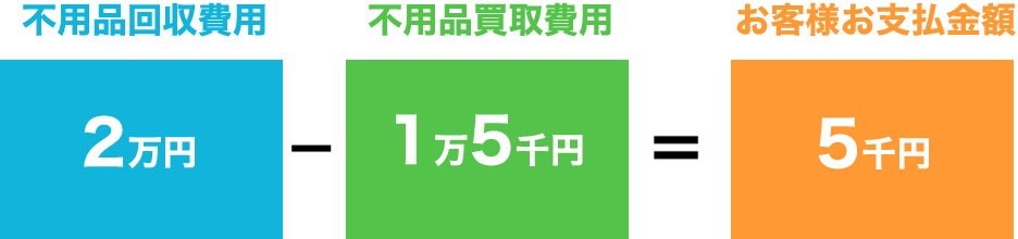不用品の回収だけでなく、買取可能なお品を買取りすることで、回収費用が5,000円とお安く。